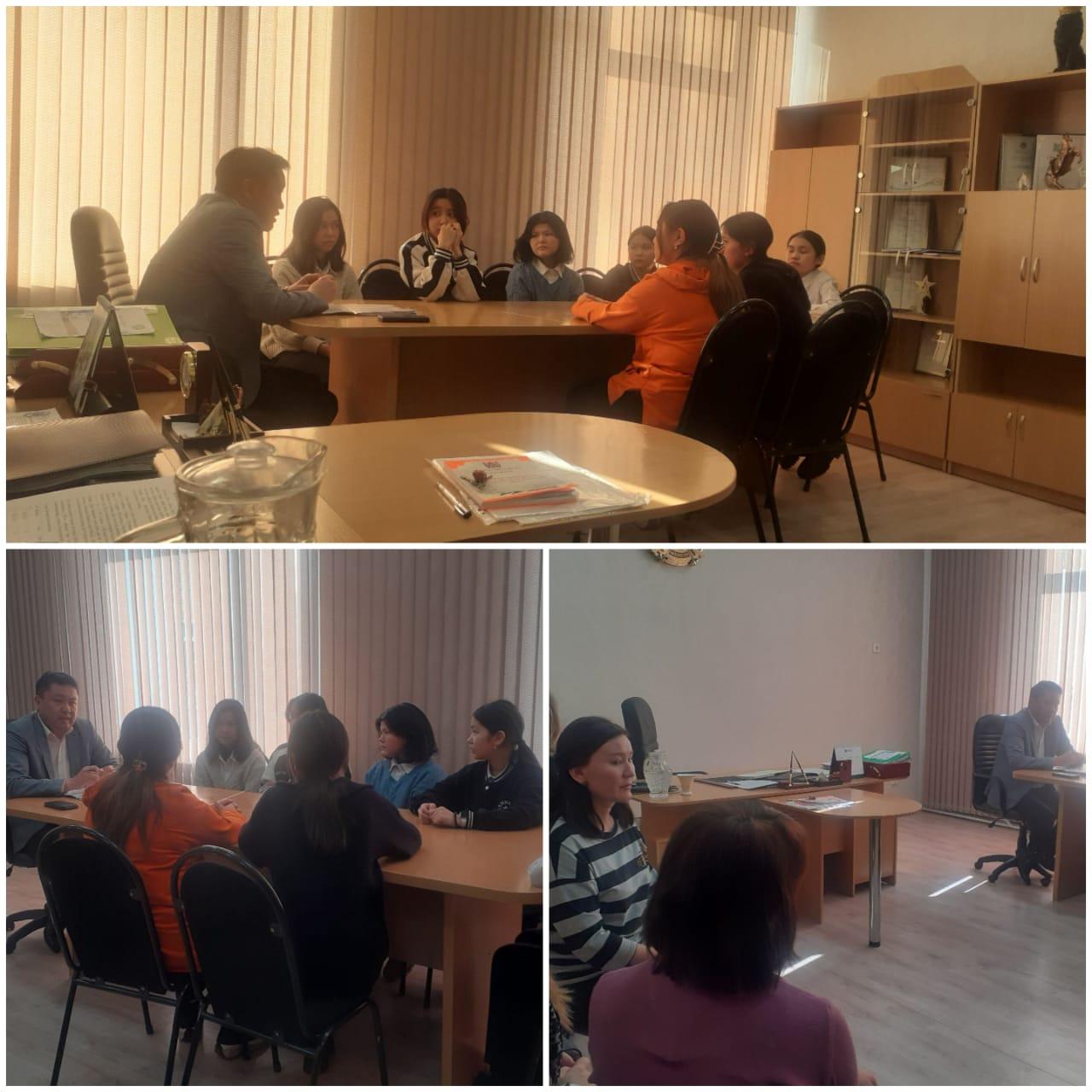 Дулат Ермекович провел беседу о формировании морально-волевых качеств, о важности выбора будущей профессии, о формировании мировозренческих представлении об общечеловеческих ценностях, так же о необходимости в первую очередь получения обязательного среднего образования до достижения совершеннолетия