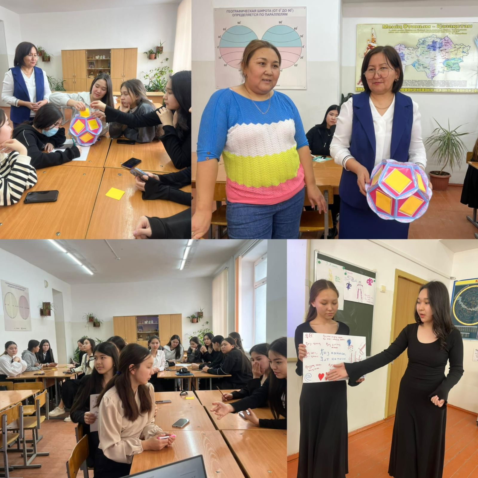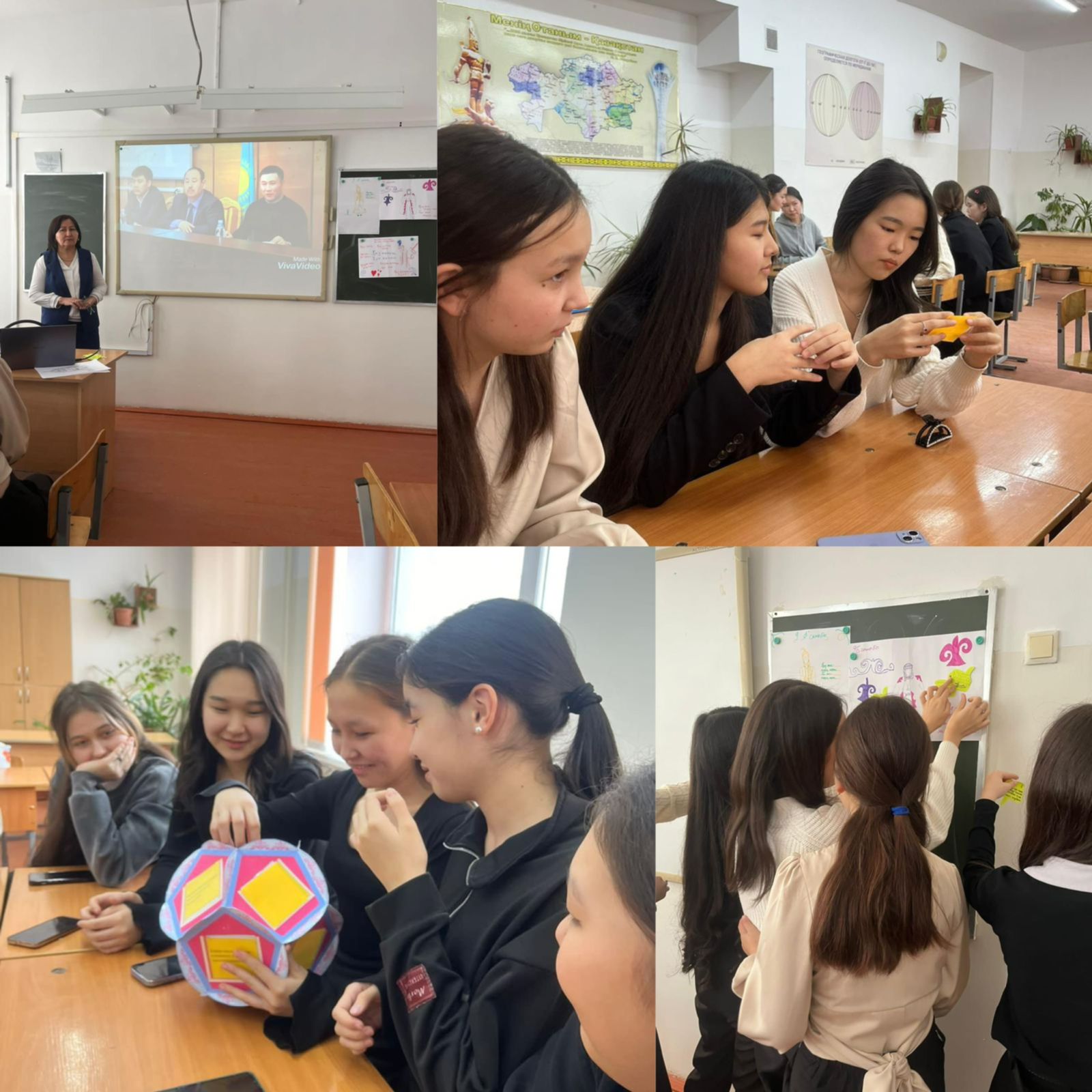 “Жас ана” жоба аясында “Қыз намысы-ұлт намысы” атты қыздарға арналған тәрбие сағаты өтті. Бұл іс -шараға Аналар кеңесінің мүшесі Азимханова Каламкас Конысбековна қатысып,қыздарға өзінің аналық ақыл-кеңесін, тілегін айтты. Мақсаты: ұлттық құндылықтарды бойына сіңірген, ақылды да көрікті, инабатты, саналы, шығармашыл, сауатты, заманауи бойжеткен болуға бағыттау.Тәрбие сағатында Уорд Уоллдан, дөңгелекшеден сұрақ- жауаптар, әр сынып қыздарының өздері жасаған топтық “Қиялдарындағы бойжеткен” суреті мен мақал-мәтелдердің мағвнасын ашу, бейнебаян, бейнежазба көрсетілді.Соңында қыздар тәрбие сағатын өз ойларын ортаға сап қорытындылады.
