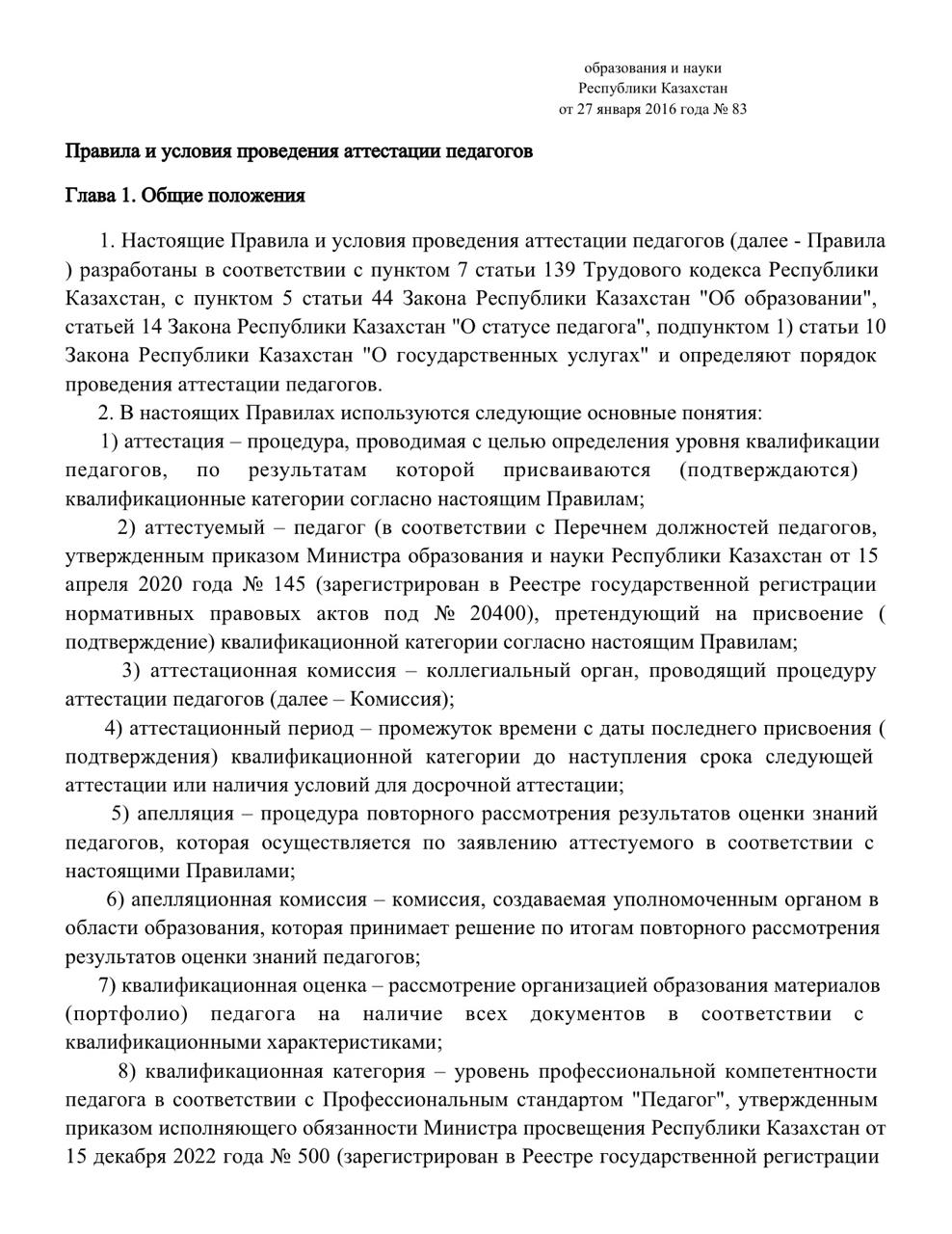 Средняя общеобразовательная школа № 11 » Біз туралы » Аттестация » О внесении изменения в приказ Министра образования и науки Республики Казахстан от 27 января 2016 года №83 "Об утверждении Правил и условий проведения аттестации педагогов"