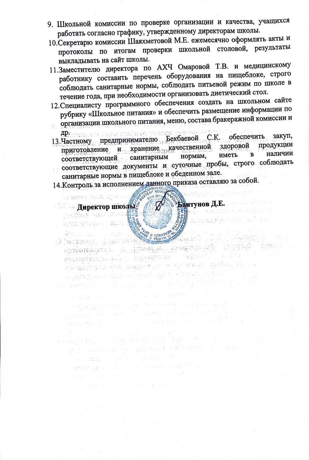 Қабылдау бөлімі :