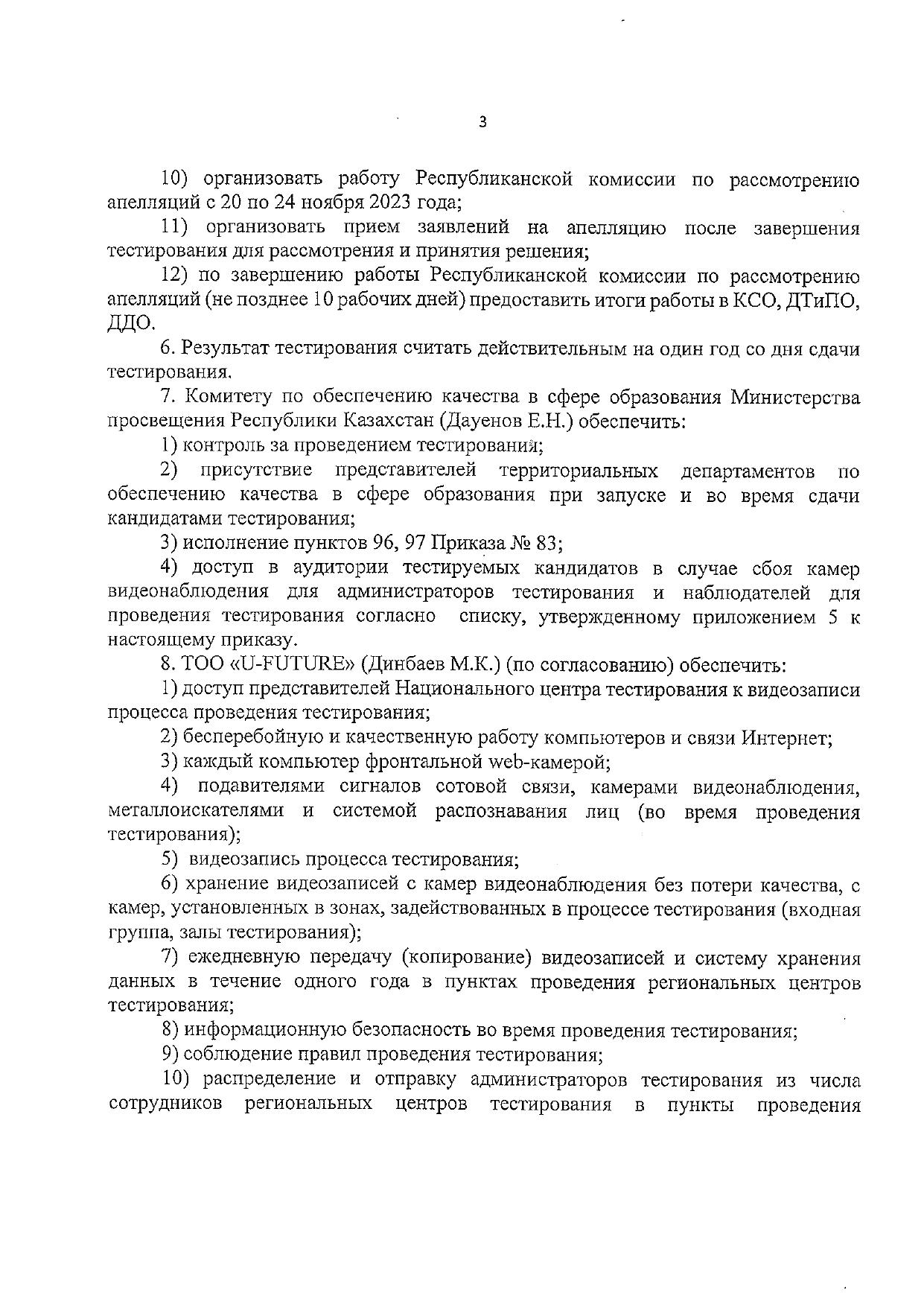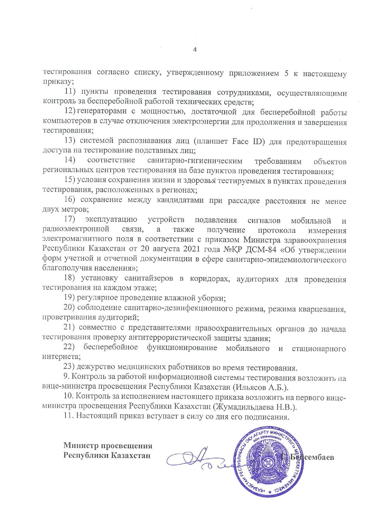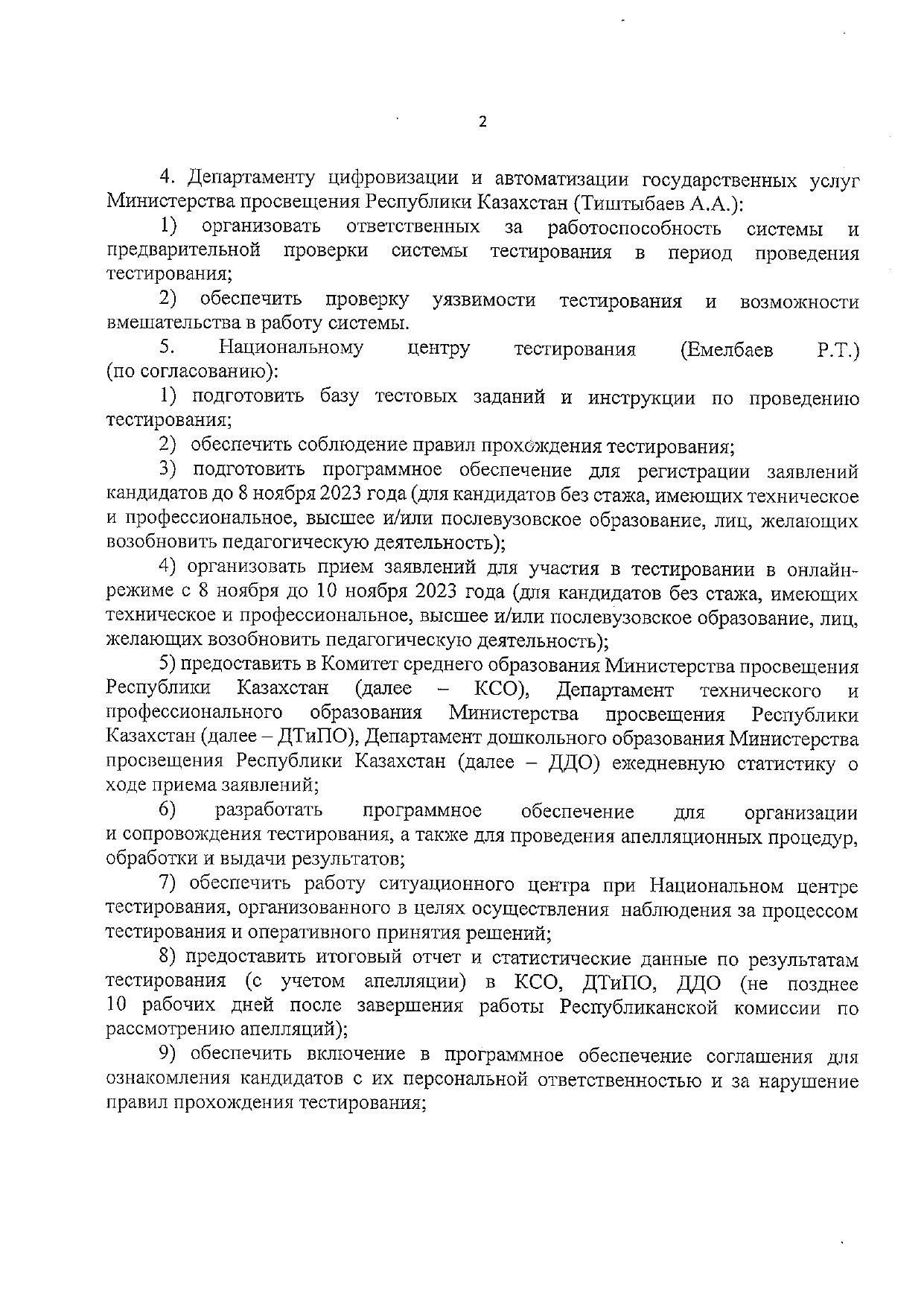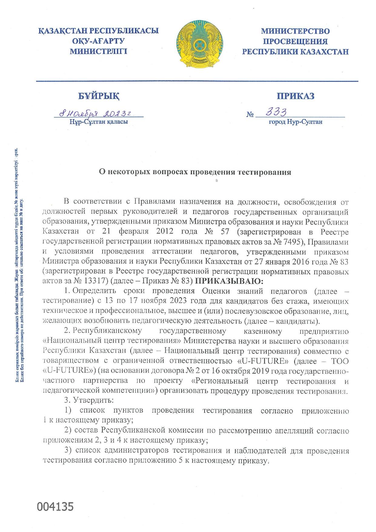 Средняя общеобразовательная школа № 11 » Ақпарат » Приказ Министерства просвещения №333 от 8 ноября 2023 года о проведении тестирования (ОЗП) для трудоустройства в организации образования