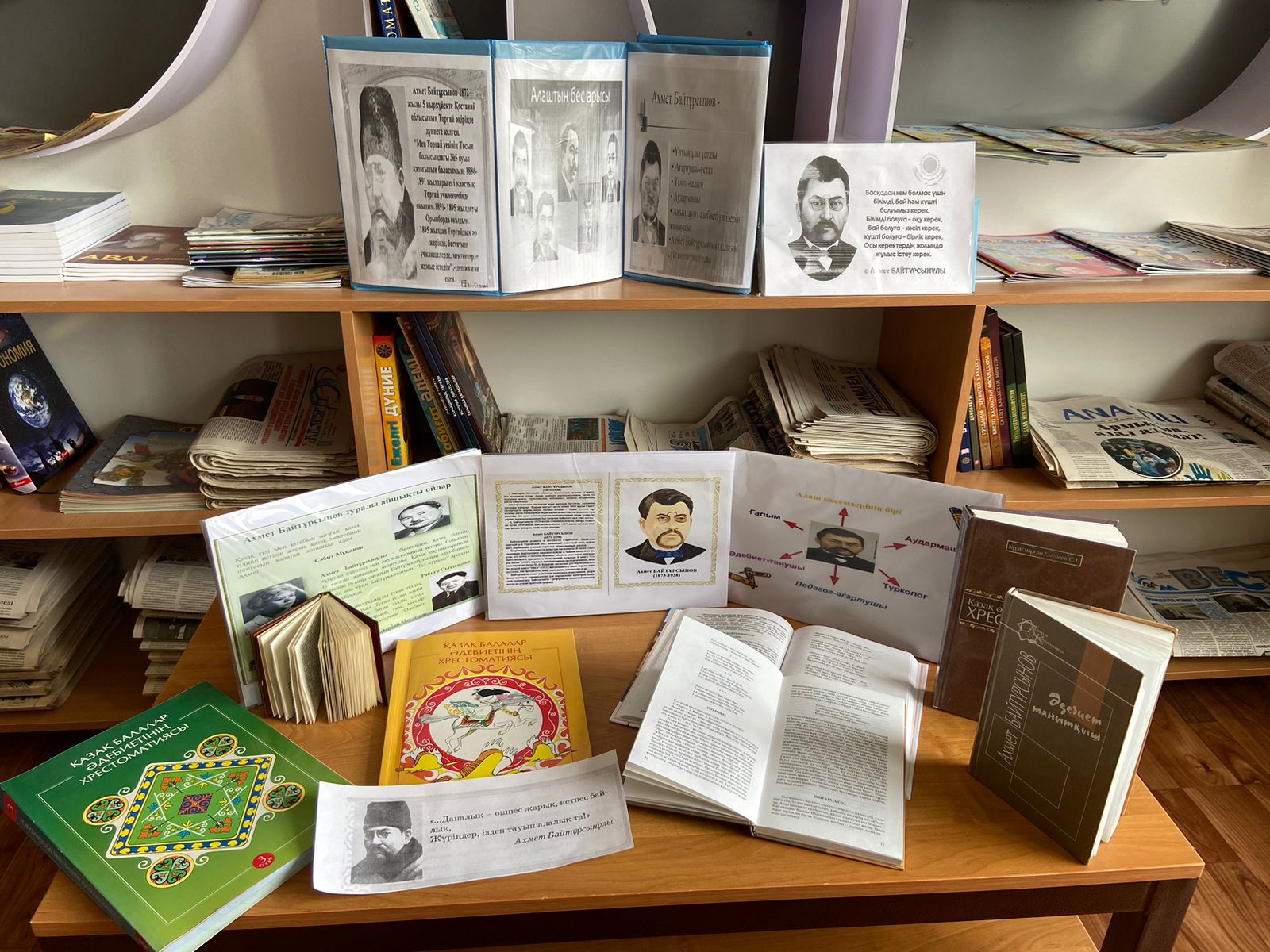 Көрмеге қазақ тілі білімінің іргетасын қалаушы, ірі-ғалым, ағартушы-педагог, сөз құдіретін танытқан танымал ақын, қазақ баспасөз тілінің ұлттық үлгісін көрсеткен талантты публицист, туған халқының рухани дүниесін көтеруге көп күш жұмсаған мәдениет қайраткері – А.Байтұрсынұлының «Әдебиет танытқыш», «Қырық мысал», Қазақ балалар әдебиетінің хрестоматиясы»шығармалары, газет-журналдар қойылды.