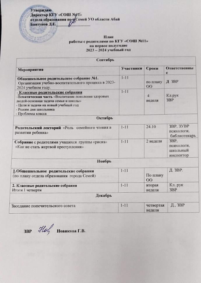 План работы с родителями на І полугодие » Средняя общеобразовательная школа № 11