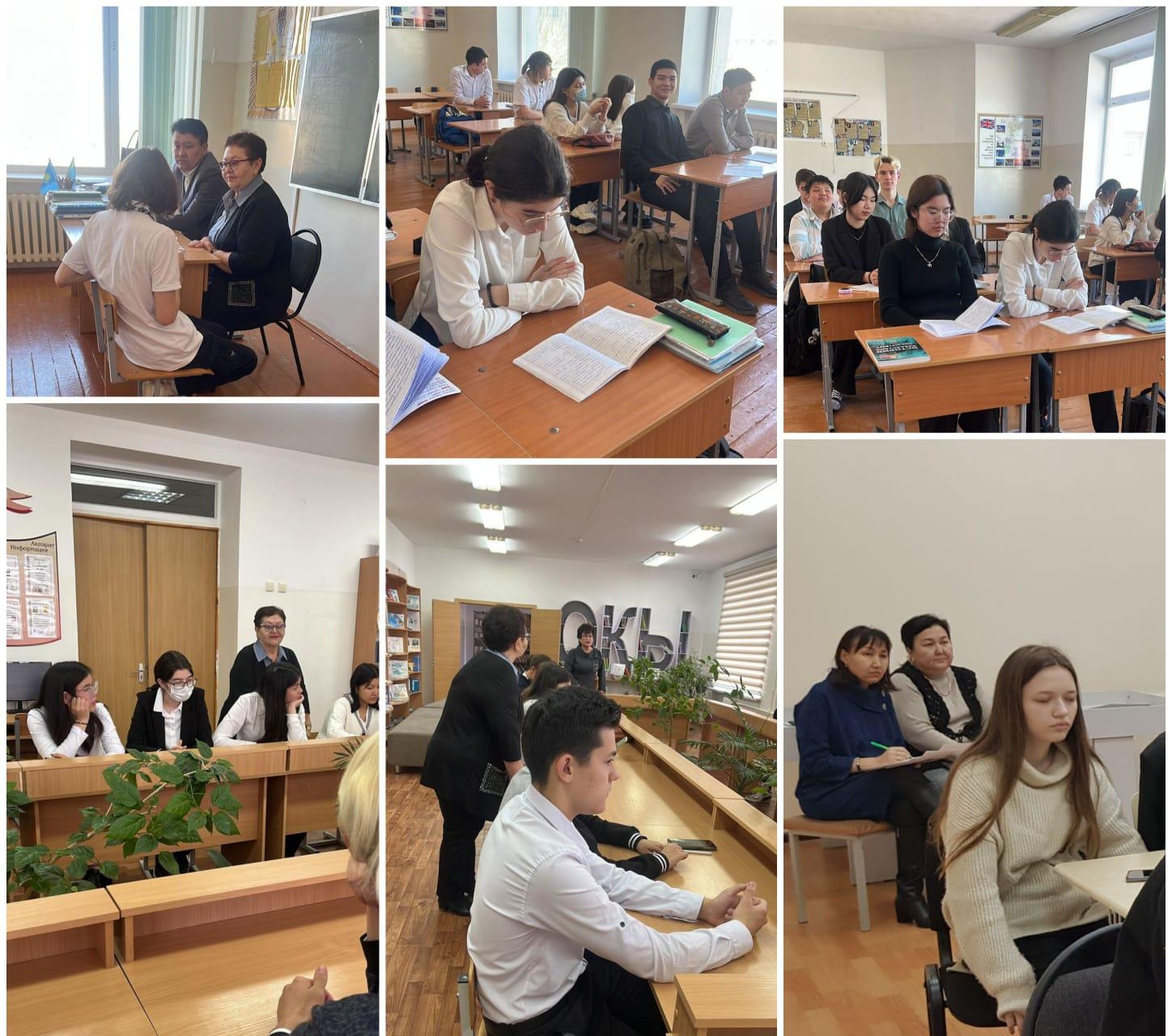 С целью подготовки учащихся к ЕНТ в КГУ «СОШ№11» был проведен административный срез знаний в присутствии учителя истории Токашевой К.К., директора школы Байтунова Д.Е.,заместителей директора Кудайбергеновой А.К.,Темербековой И.К. и классного руководителя Тлеубердиной А.Я.,который показал уровень подготовленности учащихся 11 В класса, ряд семинаров по основным темам и защита проектов, где учащиеся показали сформированность познавательных компетентсностей.