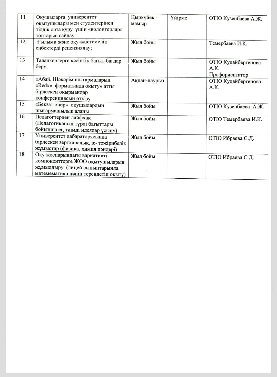 Мектеп- ЖОО ынтымақтастығының жұмыс жоспары » Средняя общеобразовательная школа № 11