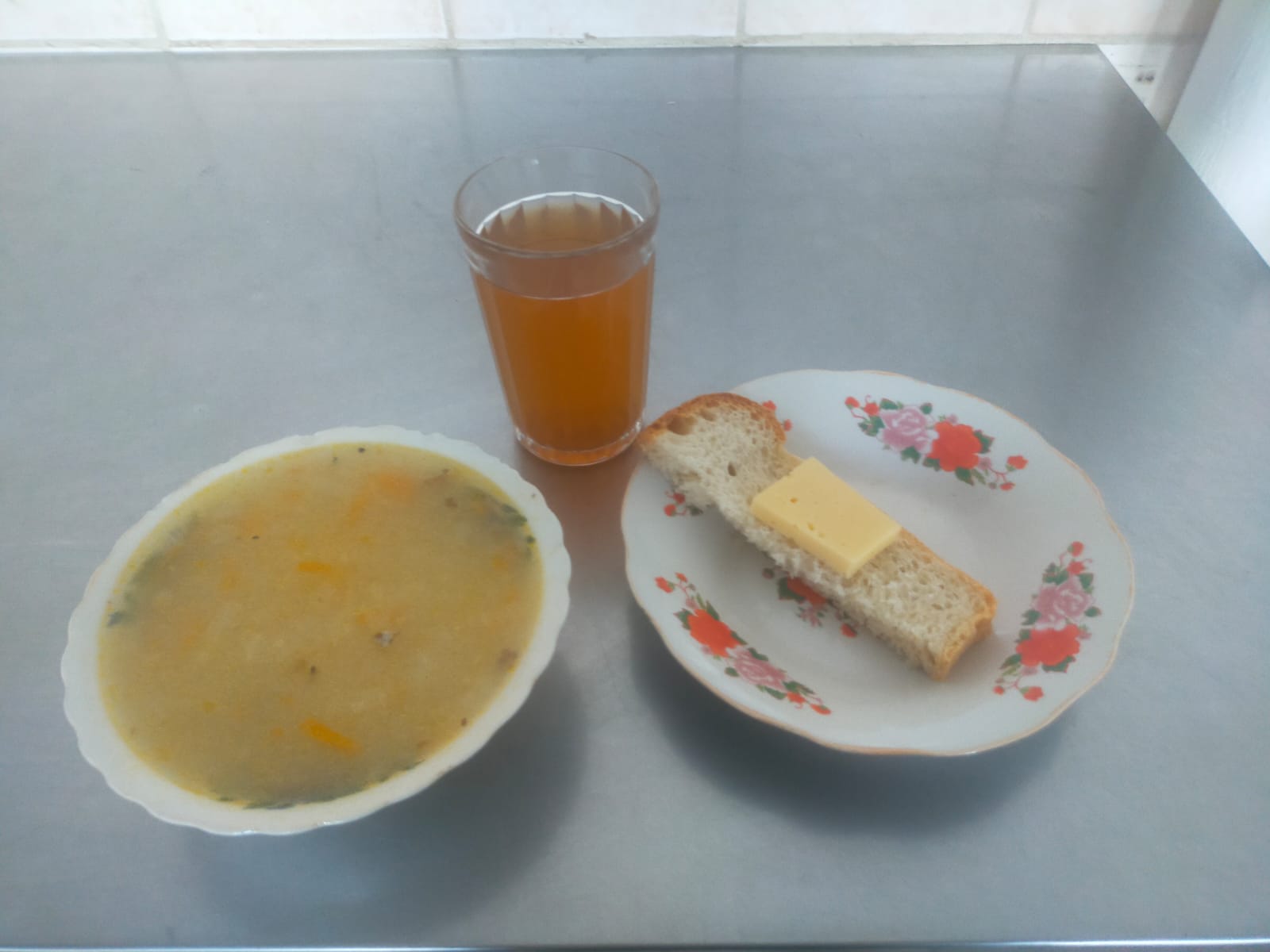 Суп рисовый с рыбными фрикадельками, хлеб, сыр, Компот из сухофруктов